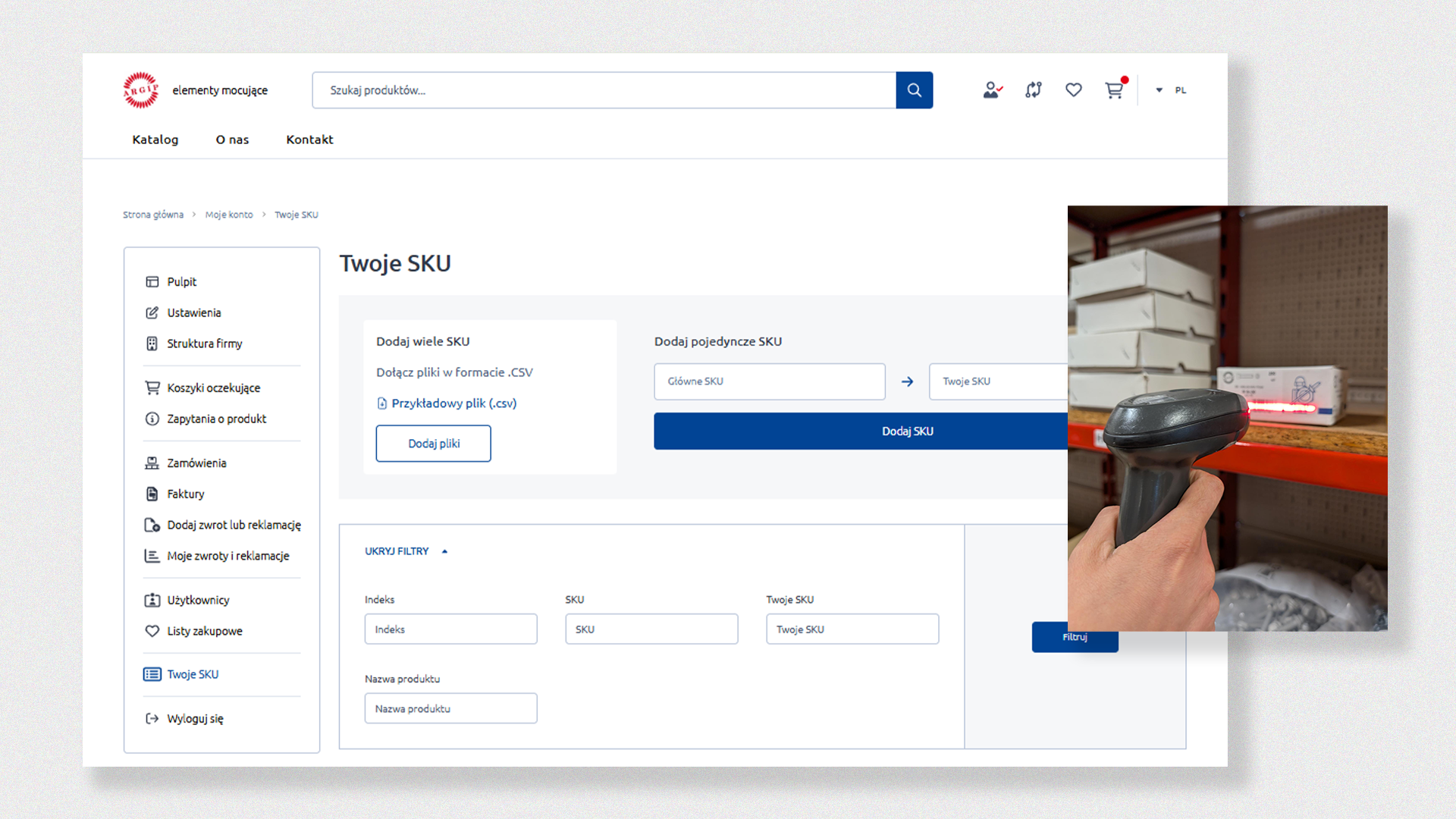 One of the key features is the so-called “Your SKUs” – the ability to tag products with the customer’s own internal item codes. Contractors can assign their internal codes to Argip’s offer, which are then handled by the search engine on par with original indexes. Importantly, the system also recognizes configurable products and immediately suggests a specific variant, ready to be added with a single click.
